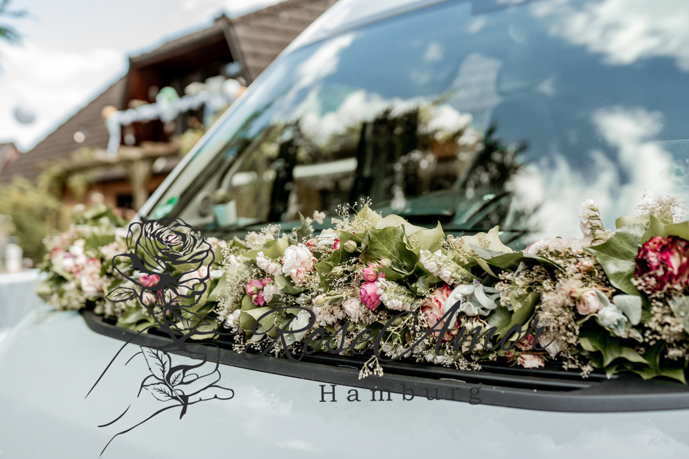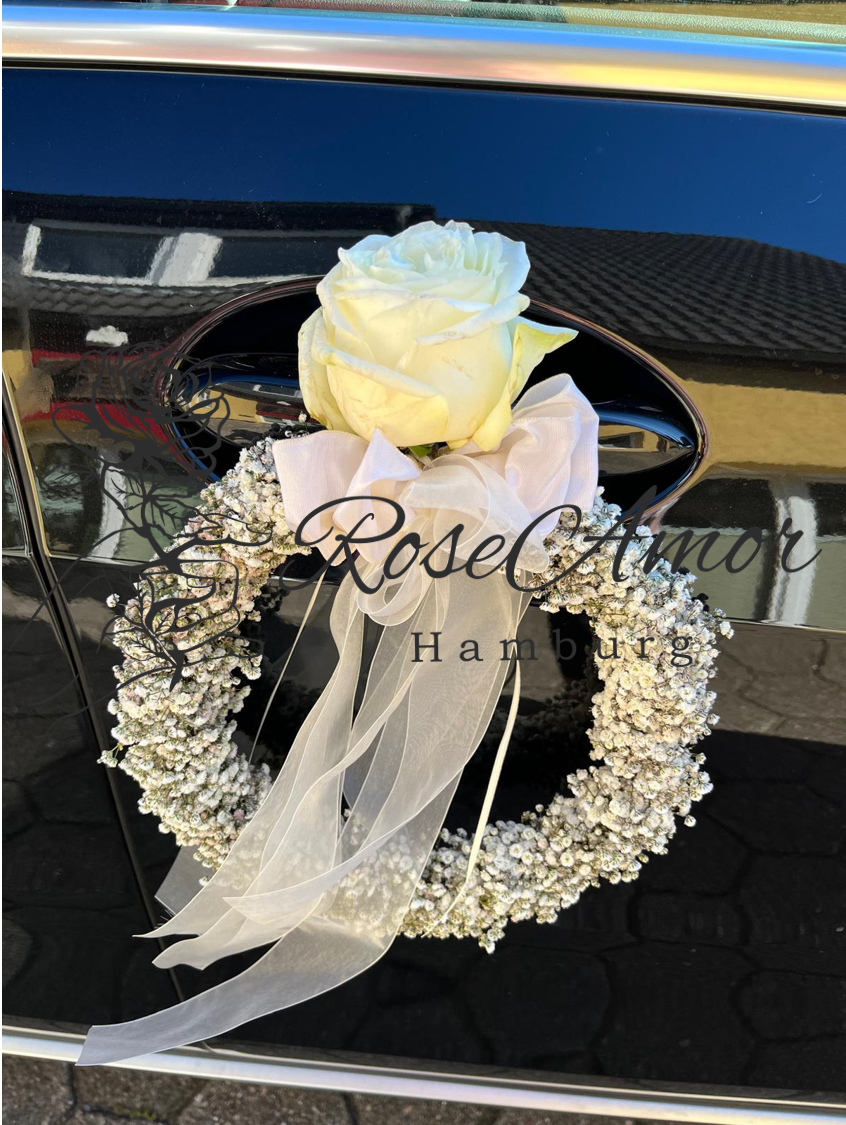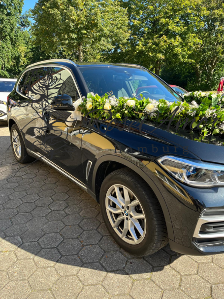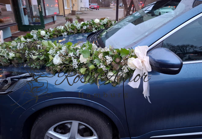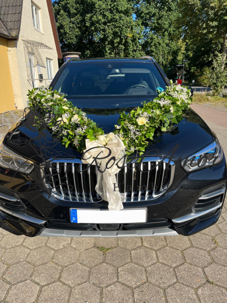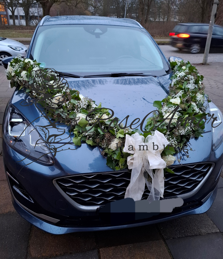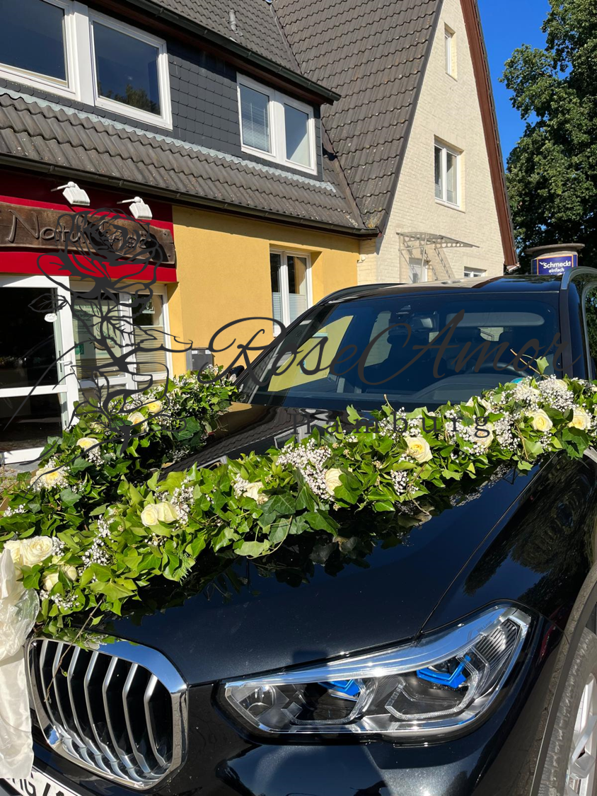 Eine kleine Auswahl an Hochzeitsarrangements wie Brautsträuße, Bräutigamanstecker, Autogirlanden & Blumenarrangements.